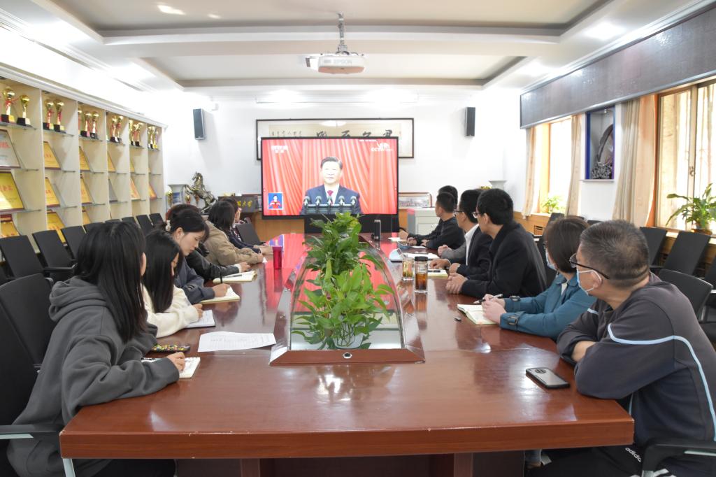 党委理论学习中心组在101会议室集体收看大会直播,第一时间聆听习近平总书记所作的报告。
