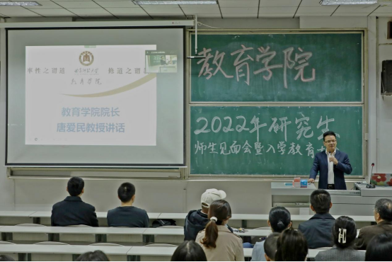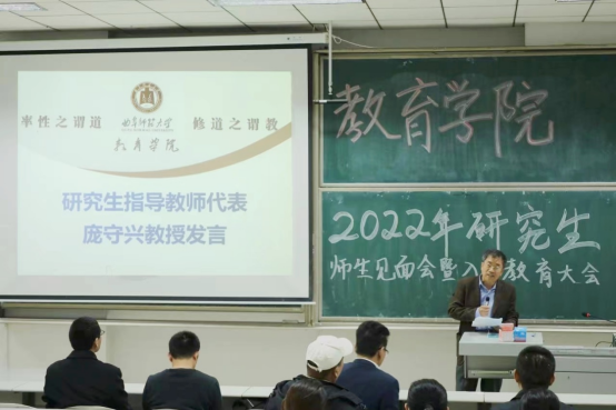 的发展历程、学科建设等方面做了详细介绍。他指出,希望同学们在不断实践和探索中练就读书、思考、写作和表达的功夫,借助努力和勤奋,凭借追求和超越,成长为一名优秀的教育研究者。