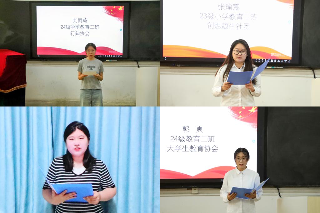 经投票表决,郭爽当选大学生教育协会社长,于子桐当选童伴成长公益协会社长,刘雨琦当选行知协会社长,张瑜宸当选创想趣生社长。