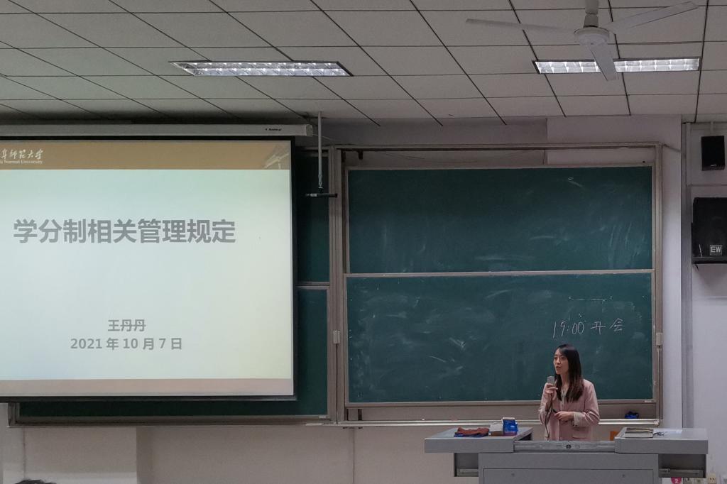 于2021年10月7日晚在综合楼306教室召开了关于学分制相关管理规定指导会。本次会议由王丹丹老师主讲。
