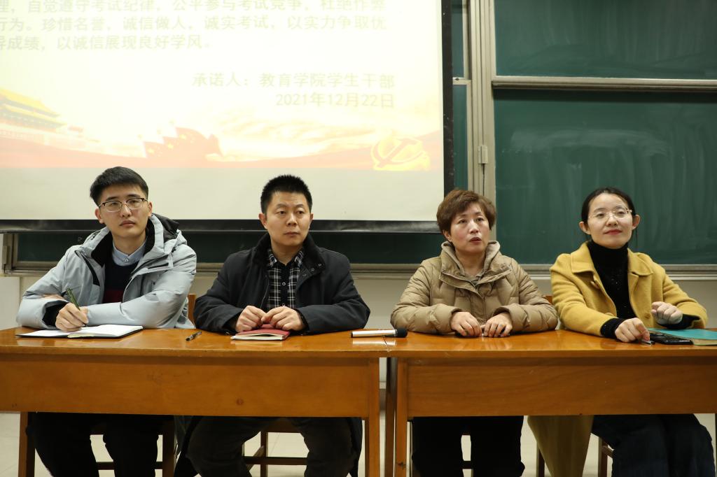 首先,院学生会主席庞霄汉对本学期学生会工作进行总结,并对后续工作作具体安排;随后,周长缨、张东霞老师分别讲话,她们在讲话中指出,学生干部要严以律己,明确自身的义务和责任,积极备考,诚信考试,充分发挥模范带头作用;接着,院学生会秘书处副秘书长王芸霄带领学生会全体成员宣读诚信应考承诺书;最后,孙书记作总结讲话。他对院团委、学生会一学期以来的工作表示肯定,对学团老师和同学们的辛勤付出表示感谢,同时强调,全体学生干部要提高认识,认真复习备考,带头遵守考试纪律,争作诚信守纪的表率,树立好香港世博娱乐城