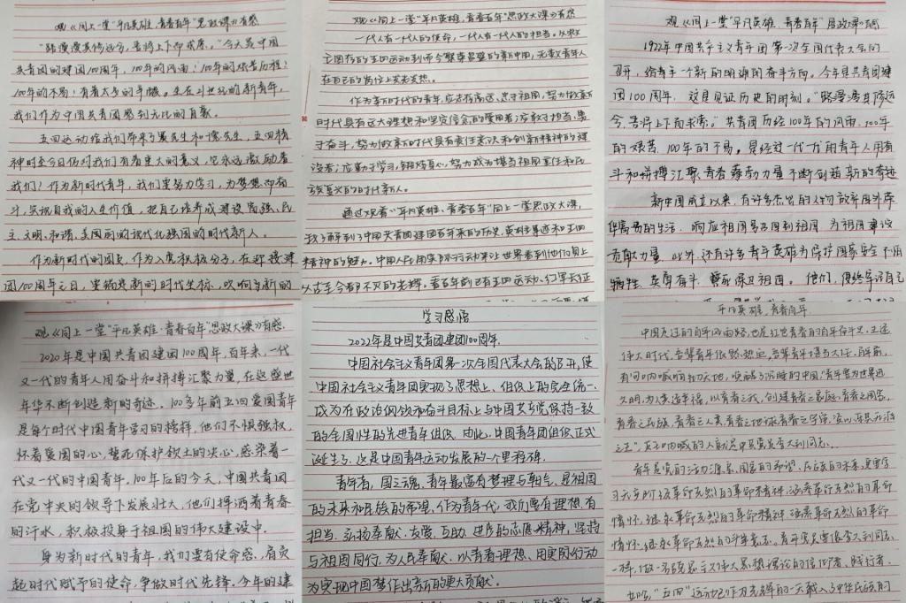 学习活动结束后,同学们认真书写感悟,交流心得,纷纷表示作为新时代青年学子,将不负韶华,努力学习,传承红色基因,听党话,跟党走,为国家富强、民族复兴、人民幸福贡献出自己的一份力量,为祖国新时代发展建设奉献青春。