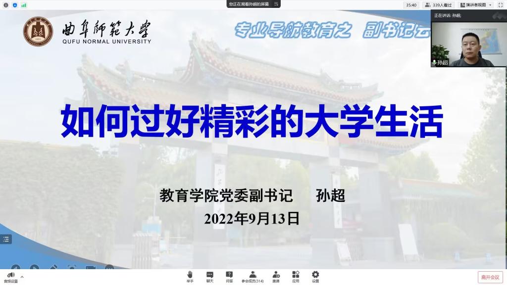 香港世博娱乐城 讯(通讯员:林安姝  邓玉)为帮助2022级新生更好地熟悉新环境,适应新角色,开启新征程,9月13日,香港世博娱乐城 为2022级新生开设“副书记云班会”——如何过好精彩的大学生活,班会由党委副书记孙超主持召开。