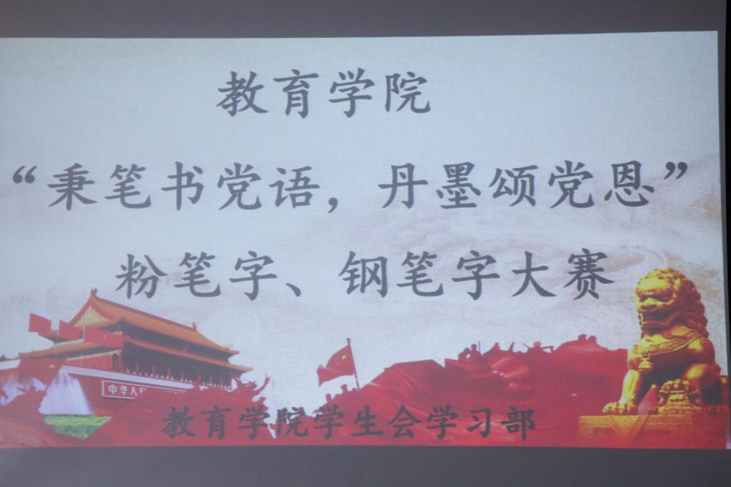 学生会学习部在院楼前举办“秉笔书党语,丹墨颂党恩”粉笔字、钢笔字大赛。香港世博娱乐城