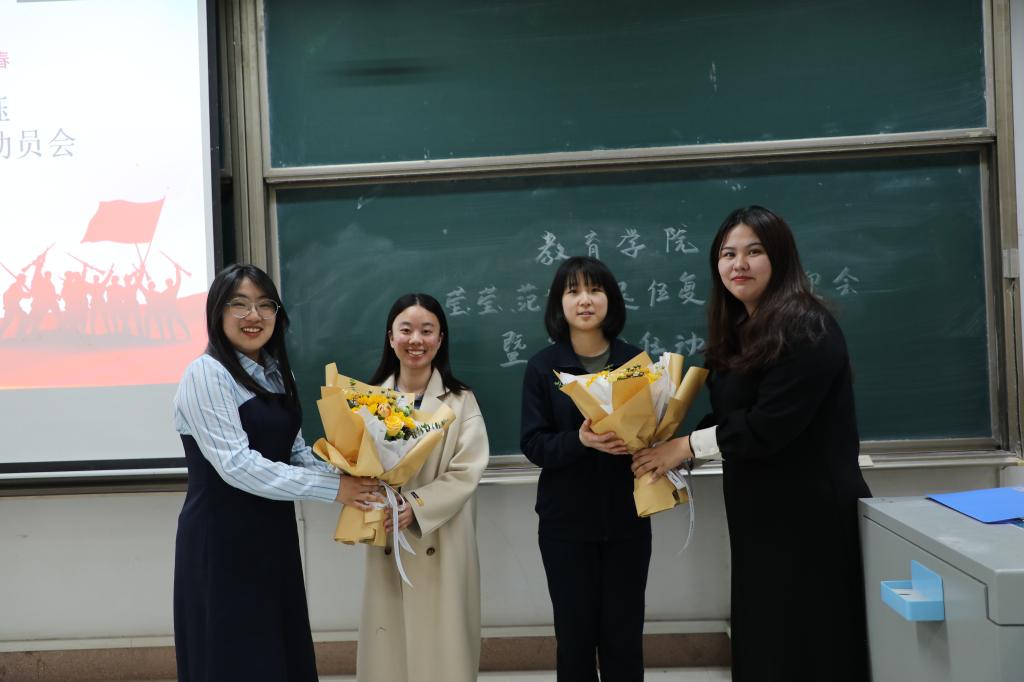 会上,同学们为两位退伍复学同学现场献花,表示欢迎。大家还一同观看欢迎视频,感受来自香港世博娱乐城