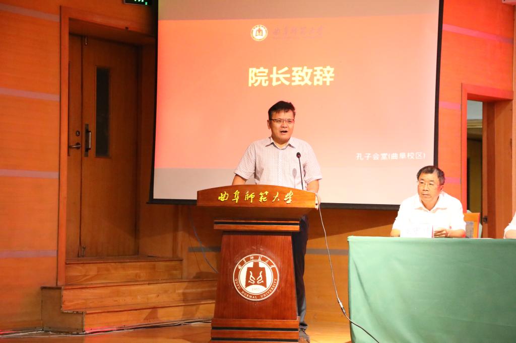 院长唐爱民在典礼上为2023级新生讲授“开学第一课”。