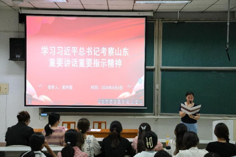 团委组织部部长崔梓煜带领全体学生干部集体学习《习近平总书记考察山东重要讲话重要指示精神》,号召大家进一步领悟和贯彻习近平总书记重要讲话精神,把握好自身定位,坚持党的领导和新发展理念,引导同学们担当时代责任,锐意进取,积极作为。