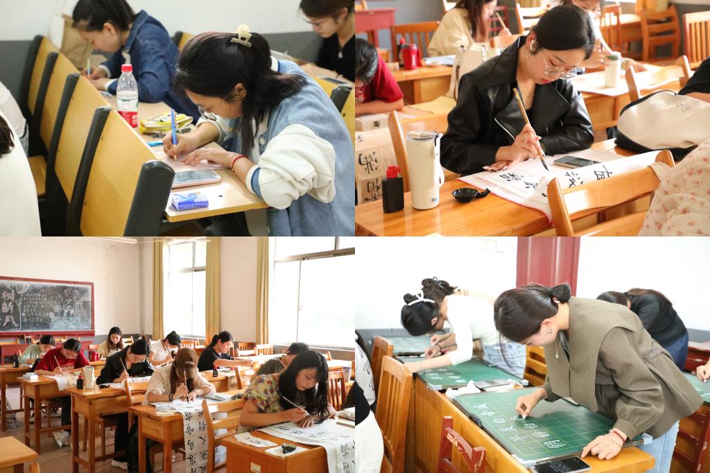 本次大赛设有毛笔、钢笔、粉笔三个项目,参赛选手可任选其一,并在规定时间内完成指定作品。比赛过程中,参赛选手心无杂念,一丝不苟,提笔自信泰然,笔端尽显专注之态。