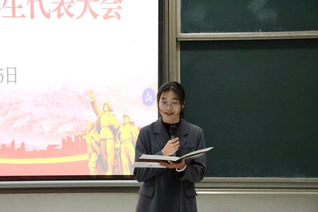 2025届学生会主席陈怡颖代表主席团作工作报告。