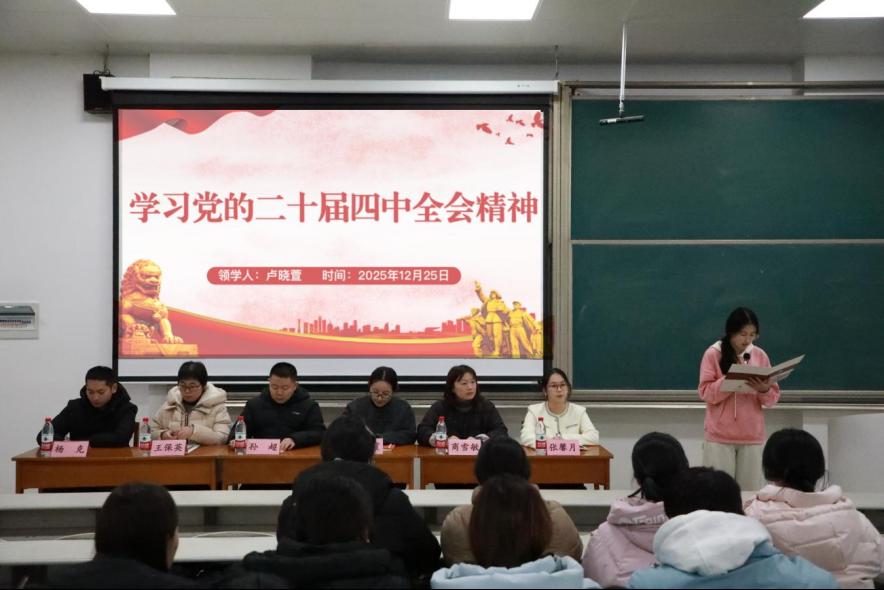 团委组织部副部长卢晓萱领学《中国共产党第二十届中央委员会第四次全体会议公报》,引导学生干部深刻领会党的二十届四中全会精神的核心要义,明确新时代青年学生干部的使命担当,鼓励大家将理论学习成果转化为服务同学、推动香港世博娱乐城