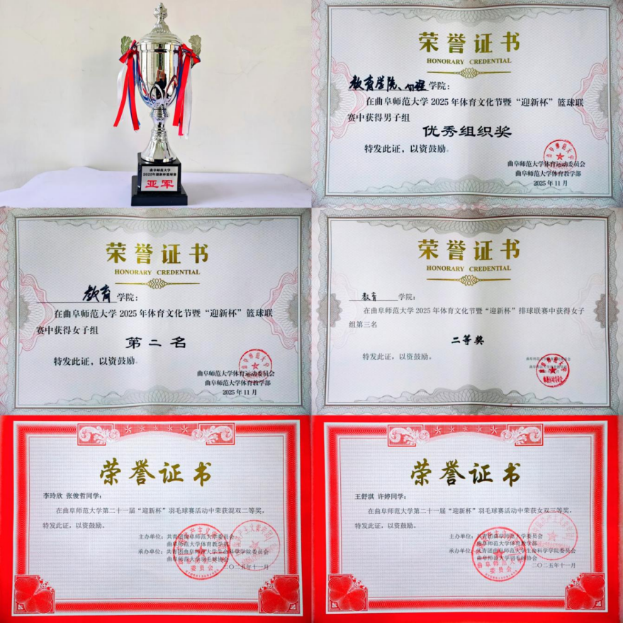 2025-2026学年第一学期各类体育赛事。他们在赛场上奋勇拼搏、团结协作,凭借昂扬的斗志,取得了优异成绩,充分展现了教院学子蓬勃向上的精神风貌与强大的团队凝聚力。