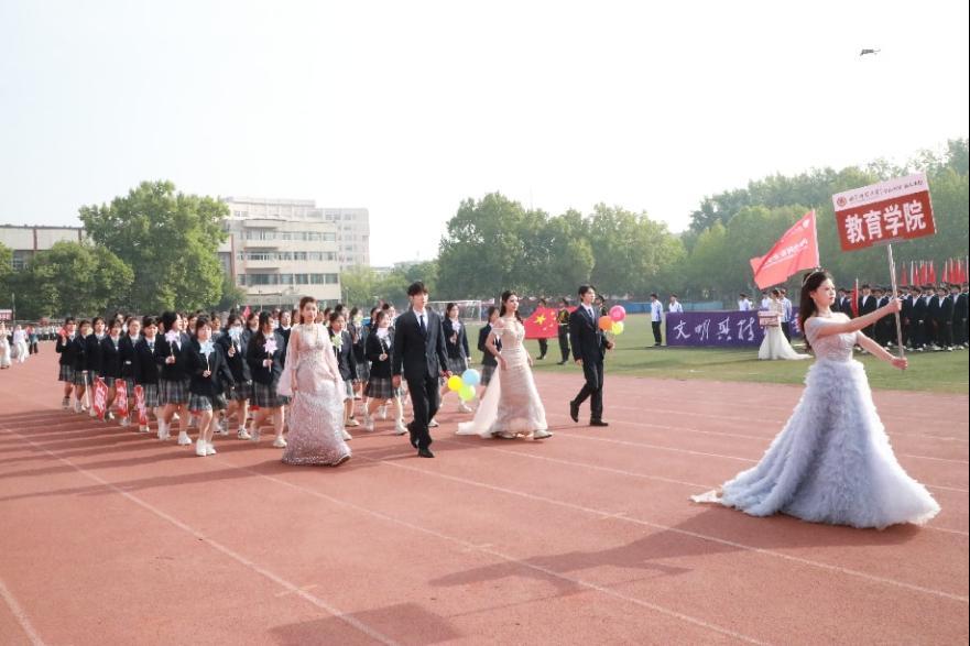 开幕式上,伴随着《运动员进行曲》的高昂旋律,运动员方队入场。教院学子昂首阔步、意气风发,用“砺行致远,笃志昂扬,教院同心,势不可挡”的口号传递着青春热情与拼搏精神。队列上方,鲜艳的五星红旗迎风舒展,与学子们昂扬的身姿交相辉映,为运动会增添了一抹赤诚而蓬勃的力量。