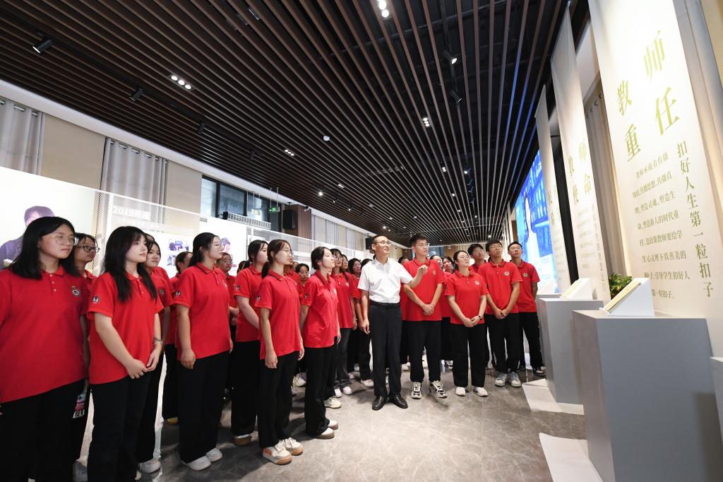 在中国教师博物馆和全省师德楷模风范专题展览展厅,同学们从一张张图片和一件件实物中深刻感受教育事业的神圣和师德楷模人物的崇高风范,在一位位教育家和名师的模范事迹中领略中华民族尊师重教的优良传统,感受历代教育大家高尚的品格、渊博的学识和深厚的家国情怀。