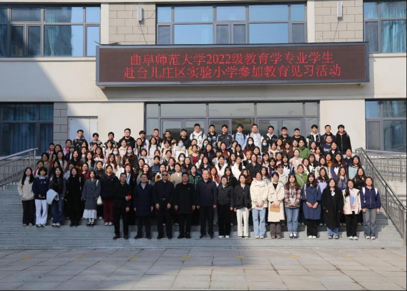 党委书记尹树林带队,组织2022级教育学专业全体本科生走进台儿庄实验小学,深入开展专业见习。