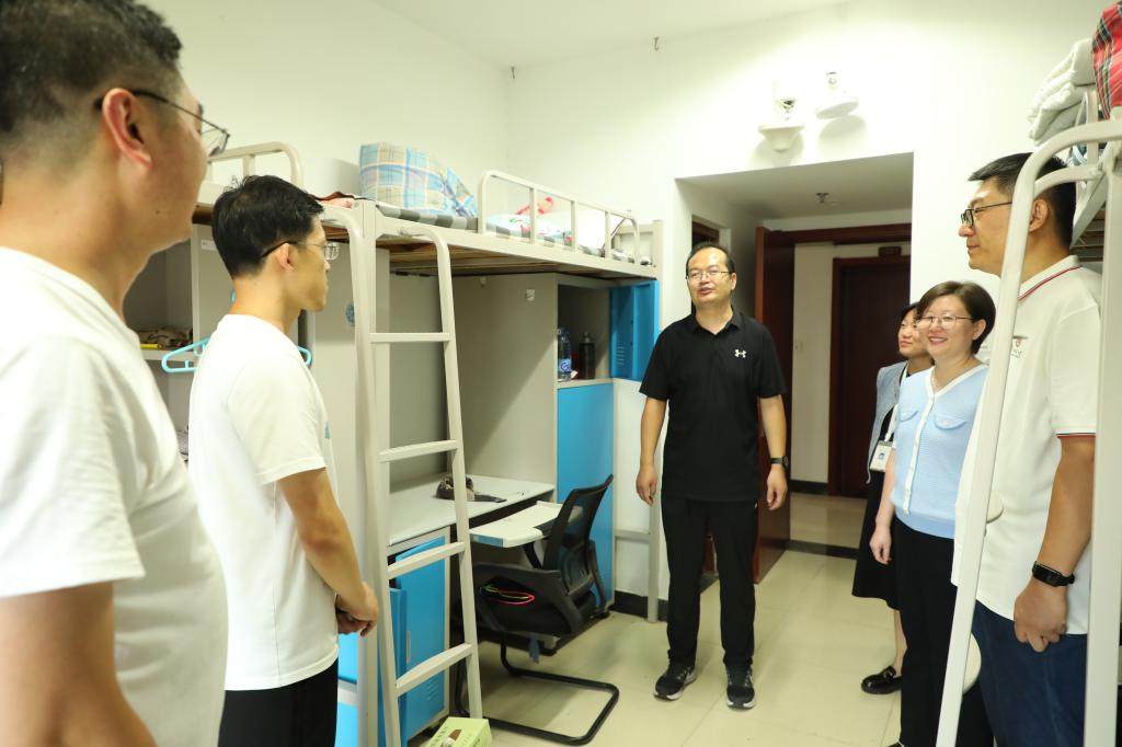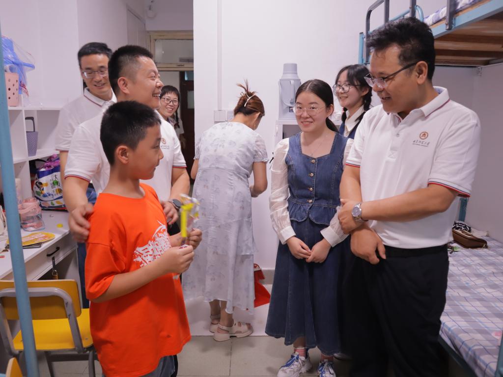 领导班子亲临现场指导迎新工作,走进宿舍看望慰问2023级新同学。