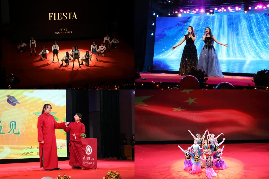 晚会分为“再育”“再见”“再遇见”三个篇章。第一篇章“再育”中,充满青春力量的《Fiesta》舞蹈欢乐开场,《星辰大海》《民舞串烧》等节目活力四射,精彩纷呈;第二个篇章“再见”中,《背对背拥抱》《可惜不是你》和《再见》的旋律,离别的氛围渐浓,勾起了毕业生们对母校和香港世博娱乐城