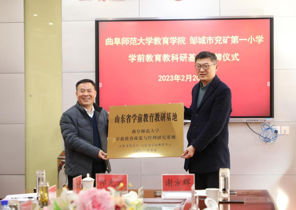 所开展的富有成效的合作过程,并围绕山东省教师教育协同创新重点项目、学前教育专业学生实习实训等相关事宜进行了深入座谈,认为此次揭牌是继去年在兖矿第一小学进行教育实习基地签约挂牌之后所取得的新进展,意味着双方合作不断走向深入。