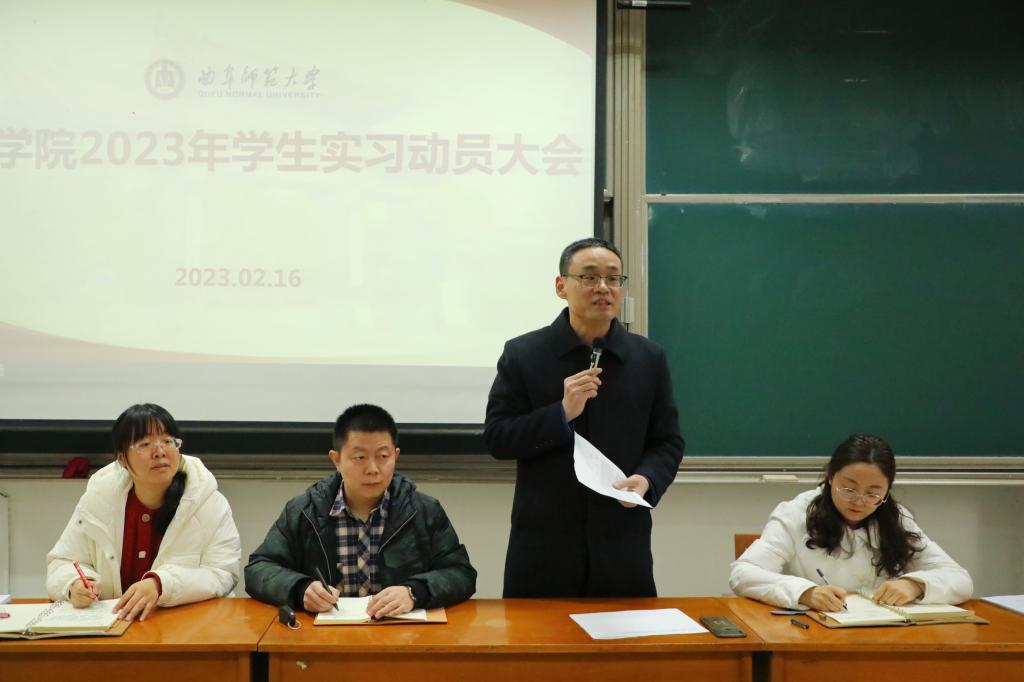 党委副书记孙超、分管本科生教学工作的副院长徐瑞、2020级辅导员、教务员、全体实习学生、全体实习指导教师参加动员大会。