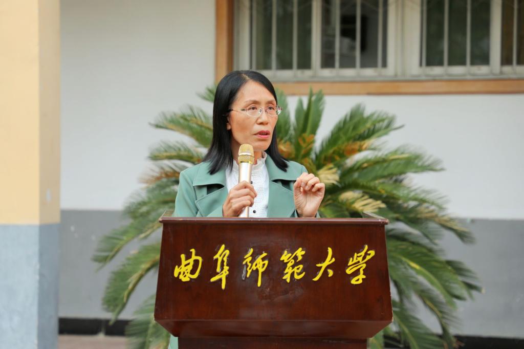 教师代表刘淑杰教授发言。她希望同学们能在大学四年里保持身心健康,加强锻炼,增强体质,认真学习、勤于思考,找到自己的发展方向。她还鼓励同学们积极与老师、同学沟通交流,注重心理健康发展,拓展兴趣爱好,更快融入大学生活,开启人生的新篇章。