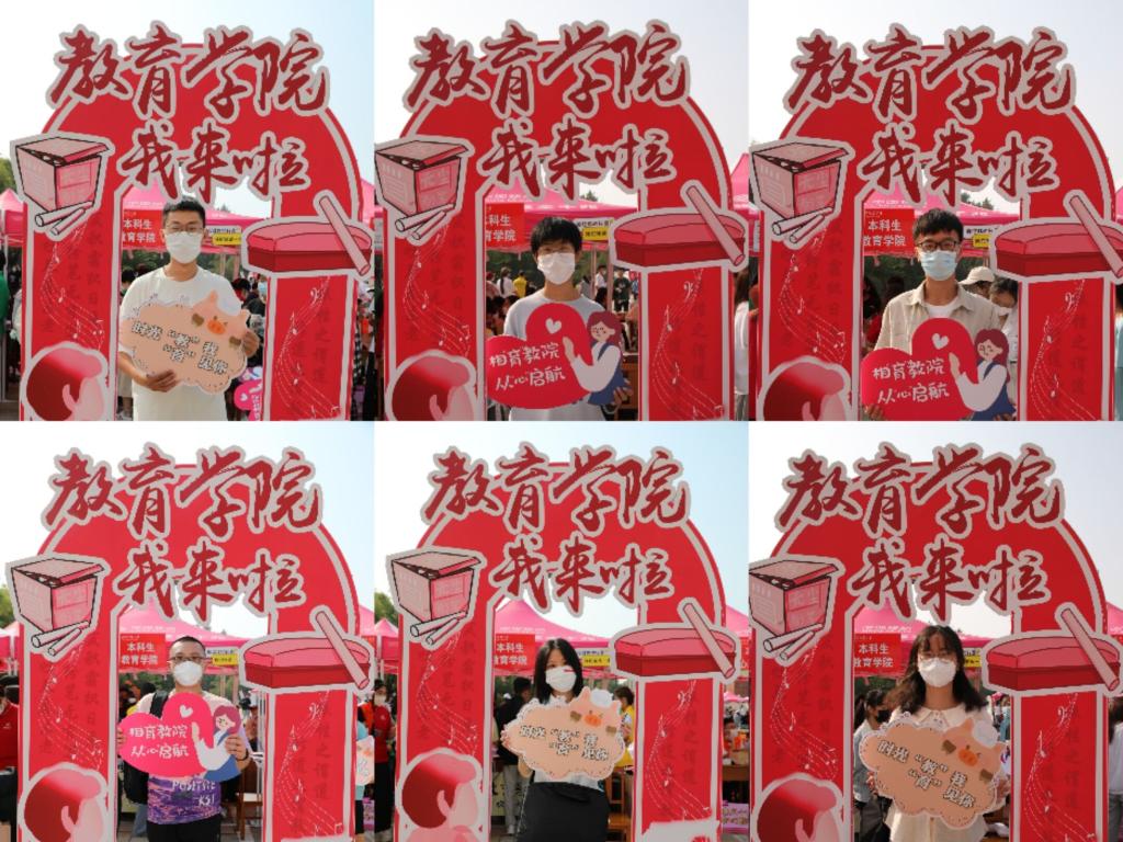 特色的迎新立牌处留下“我”与教院的第一张合影,记录走进教院大家庭、开启大学生活的美好瞬间。