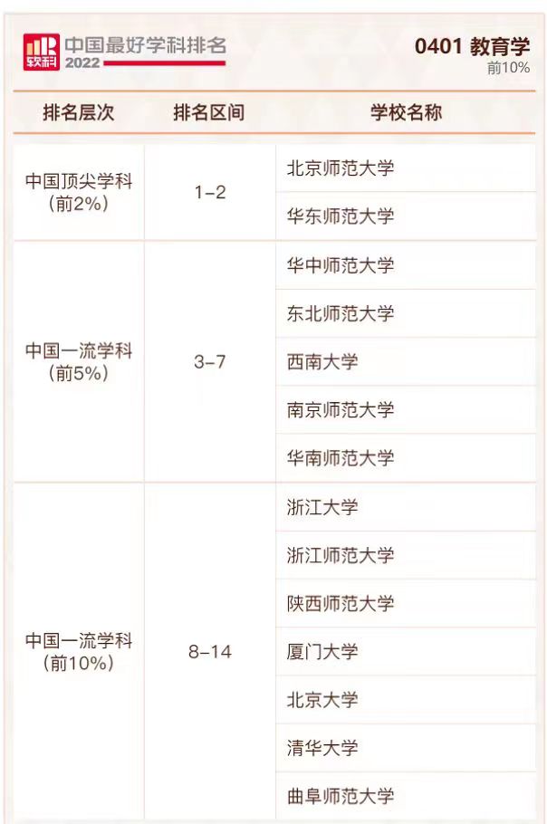 讯 2022年9月21日,高等教育评价专业机构软科正式发布“2022软科中国最好学科排名”,教育学学科排名共有73所大学上榜,香港世博娱乐城