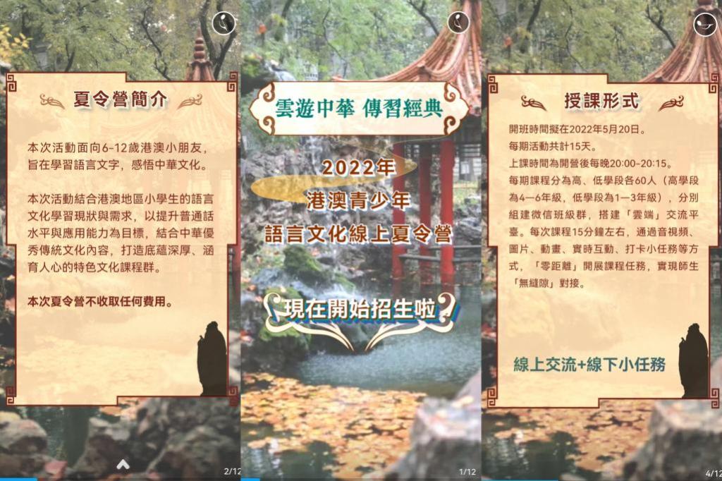 等承办的“云游中华 · 传习经典——2022年港澳青少年语言文化线上夏令营”第三期顺利开营。香港世博娱乐城
