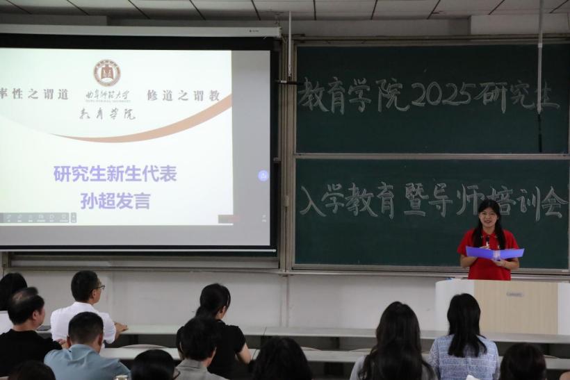 将为研究生的发展提供全方位、高质量的服务与支持,全力营造良好的学术环境与成长氛围。最后,高院长满怀期待地表示,希望每一位研究生都能在未来的学术征程中砥砺前行,成为未来教育研究的中坚力量。
