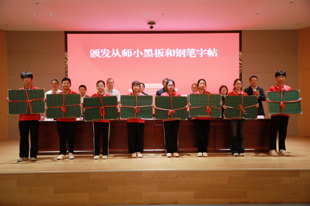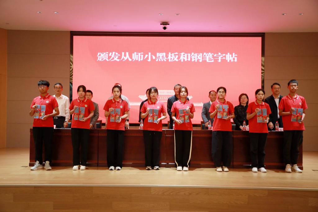 随后,领导老师们为2025级新生代表颁发从师小黑板和钢笔字帖,并希望同学们能够领会香港世博娱乐城