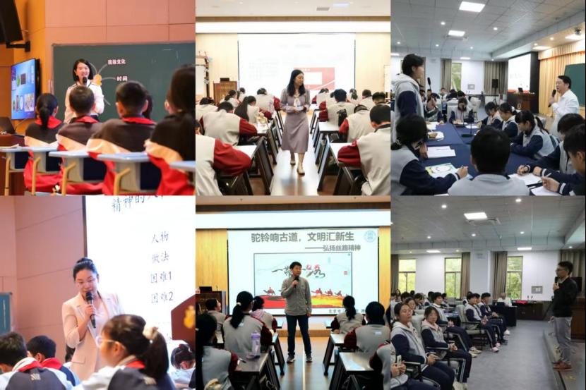 常规初一道德与法治教研组长李晶老师的道法课例《让传统美德在家庭生根》,与北京市三帆中学历史教研组组长陈化峰老师的跨学科课例《驼铃响古道文明汇新生——弘扬丝路精神》共同展现了中华优秀传统文化中“家”与“国”的紧密联系。北京师范大学第二附属中学何杰老师展示语文课例《重读〈愚公移山〉——一脉相承的民族精神》,以问题链引导学生思辨民族精神。上海市金山中学杨波老师在美术课例《孔庙建筑艺术中的规矩》中,创新性借助数字工具,让学生在情境中感悟传统建筑文化内涵。