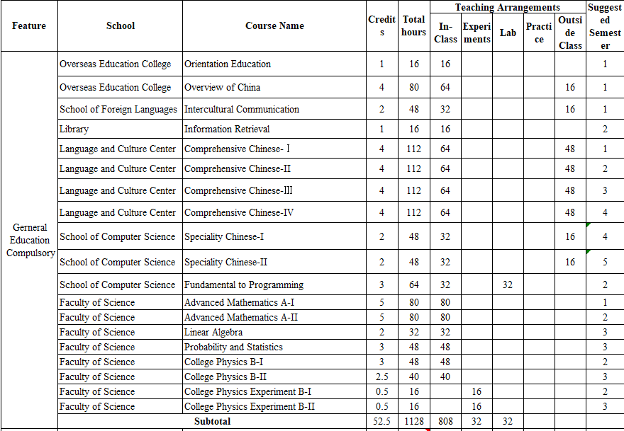 Please download the attachment for more information of the courses to be learned in four years.