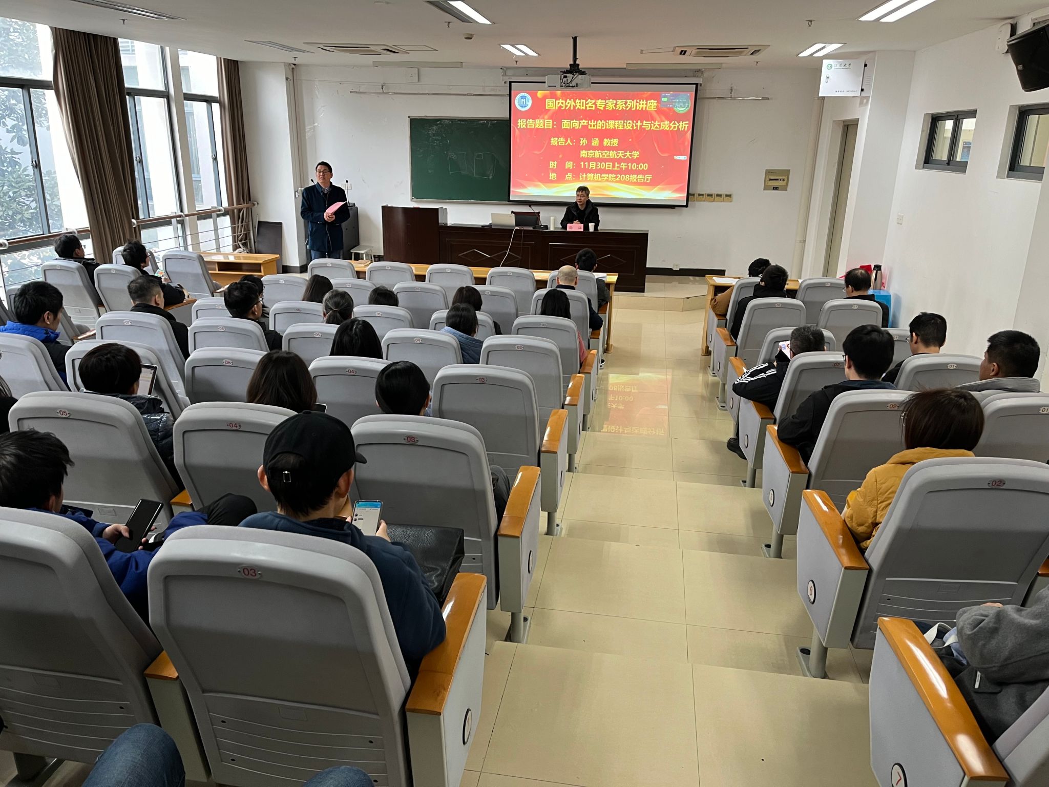 On the morning of November 30th, Professor Sun Han from Nanjing University of Aeronautics and Astronautics gave an academic presentation titled "Output oriented Curriculum Design and Achievement Analysis" in the 208 Lecture Hall of the Computer Building. The presentation was chaired by Vice Dean Han Fei of our university, and nearly 100 teachers from our university attended the presentation.